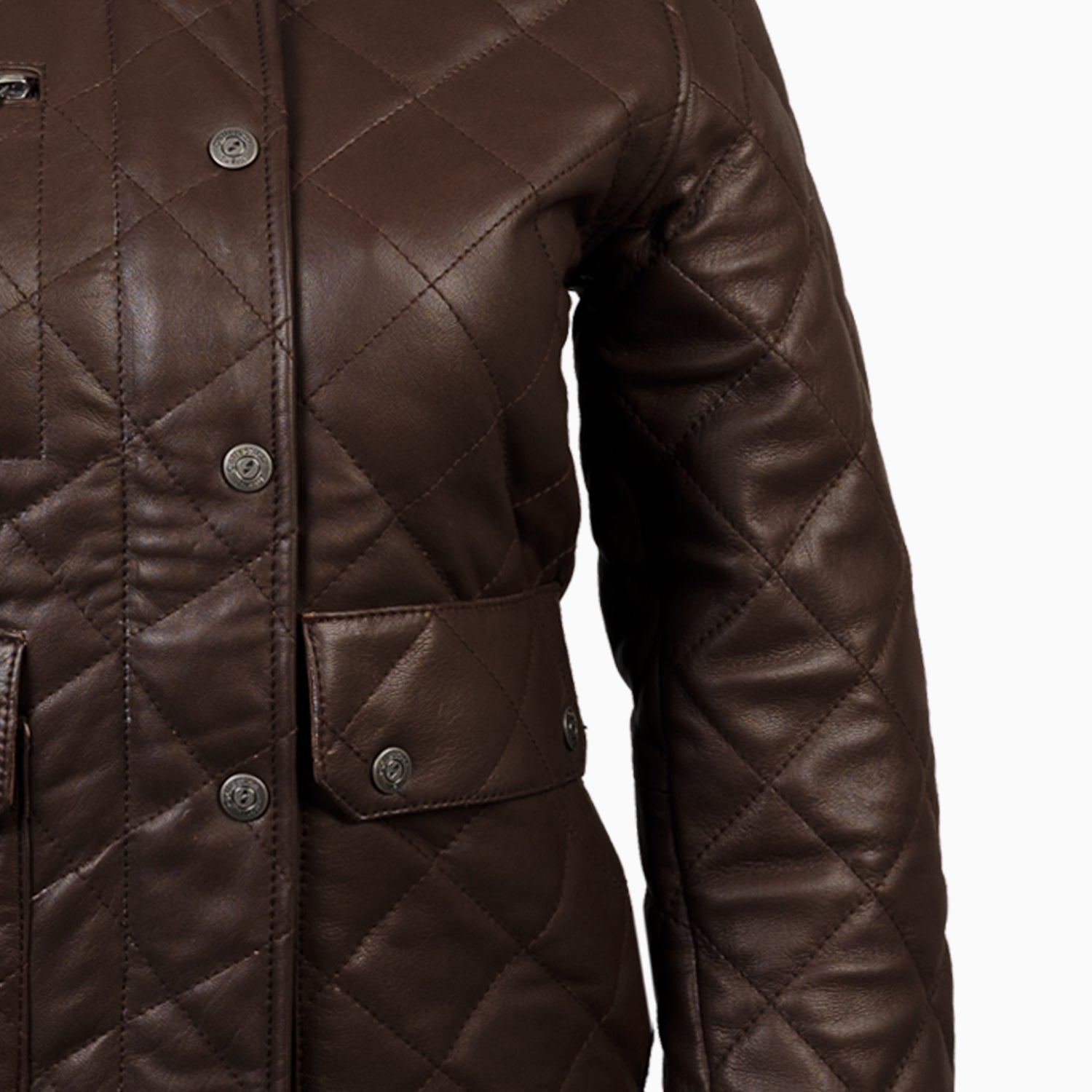 Dimond Brown Stitched Leather Jacket For Women