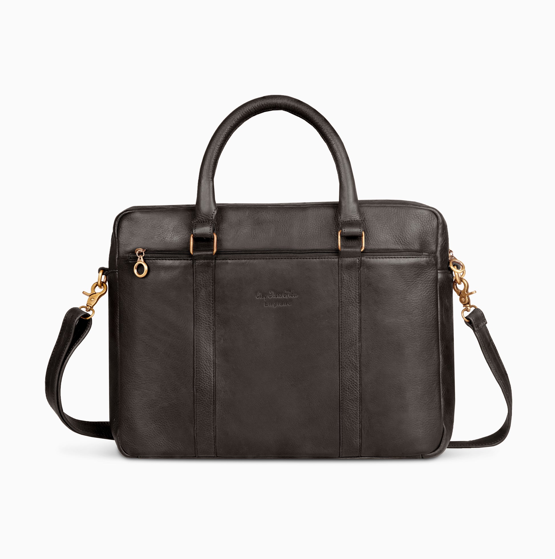 Black Single Zip Leather Laptop MacBook Messenger Leather Office File Bags