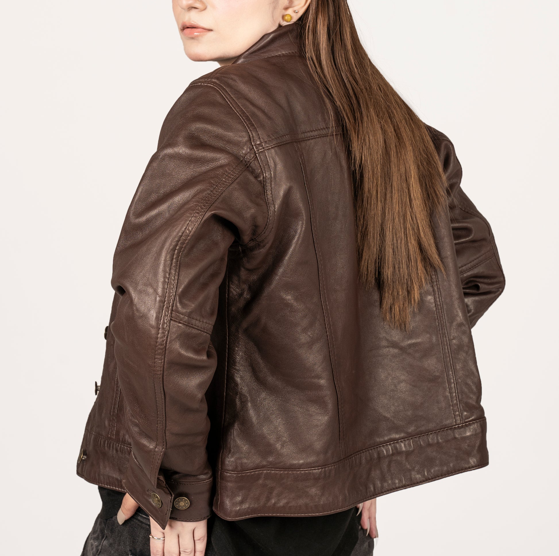 This elegant, high-end women’s leather jacket is meticulously hand-crafted for sophistication and comfort, a true investment in luxury style.